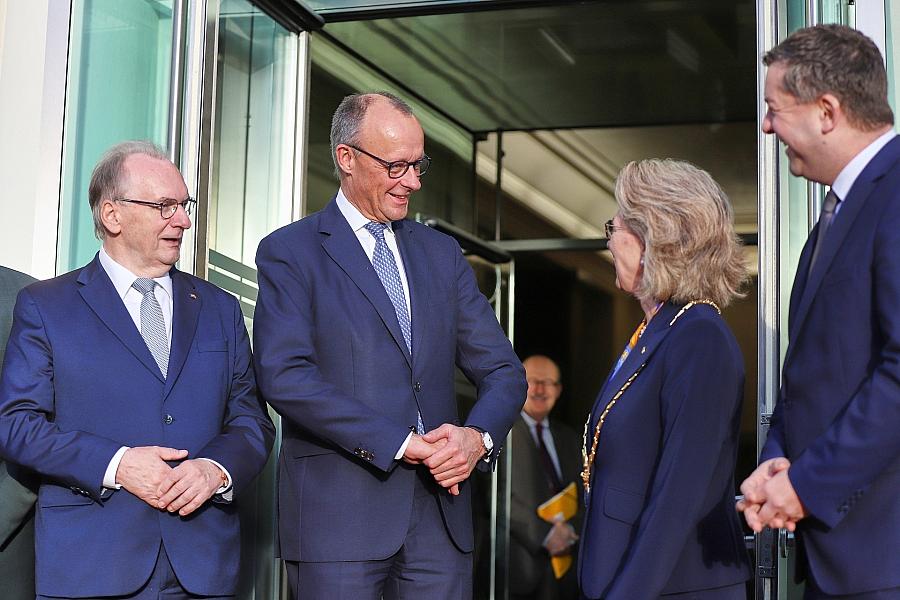 Zum Auftakt wurde er von Ministerpräsident Reiner Haseloff in der Nationalen Akademie der Wissenschaften Leopoldina begrüßt. Dort nahm Merz an einer Kabinettssitzung der Landesregierung teil.