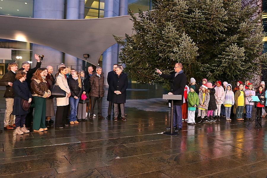 Bundeskanzler Friedrich Merz hat am Freitag den traditionellen Weihnachtsbaum vor dem Kanzleramt offiziell entgegengenommen.