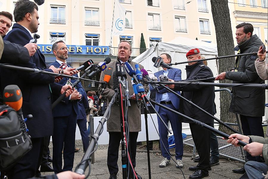 Bundesverteidigungsminister Boris Pistorius (SPD) hat am Freitag vor Beginn der Münchner Sicherheitskonferenz dem ukrainischen Präsidenten Wolodymyr Selenskyj die erste Drohne des Unternehmens Quantum Systems in Gauting übergeben.